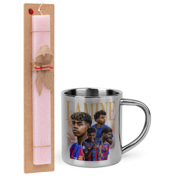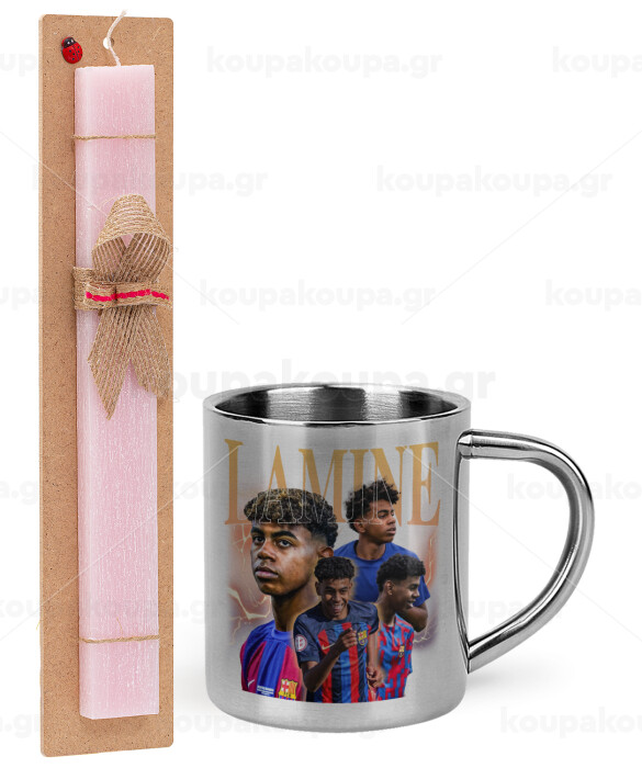 lamine yamal FCB, Easter Set, metallic thermal cup (300ml) & aromatic flat Easter candle (30cm) (PINK)