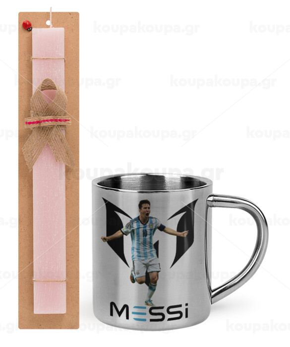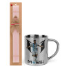 Lionel Messi, Easter Set, metallic thermal cup (300ml) & aromatic flat Easter candle (30cm) (PINK)