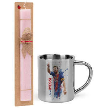 Lionel Messi, Easter Set, metallic thermal cup (300ml) & aromatic flat Easter candle (30cm) (PINK)