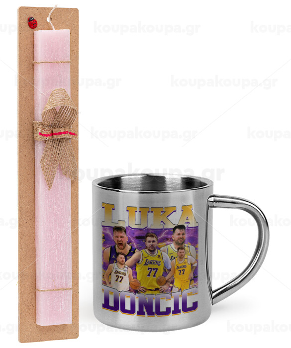 Luka Doncic Basketball , Easter Set, metallic thermal cup (300ml) & aromatic flat Easter candle (30cm) (PINK)