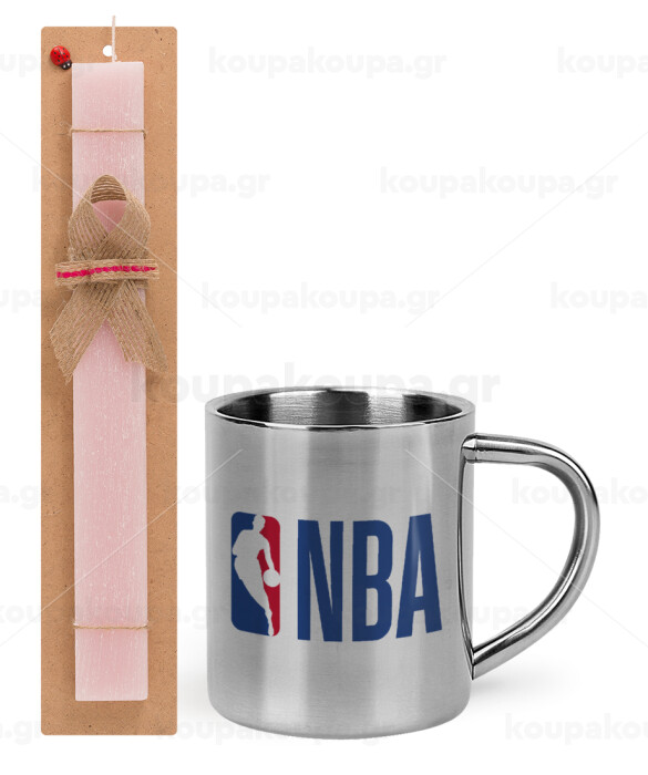 NBA Classic, Easter Set, metallic thermal cup (300ml) & aromatic flat Easter candle (30cm) (PINK)