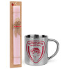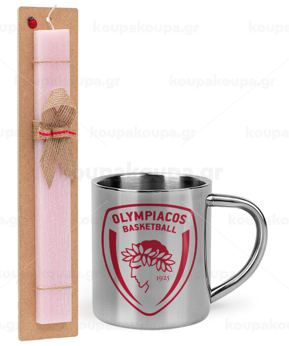 Olympiacos B.C., Easter Set, metallic thermal cup (300ml) & aromatic flat Easter candle (30cm) (PINK)