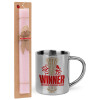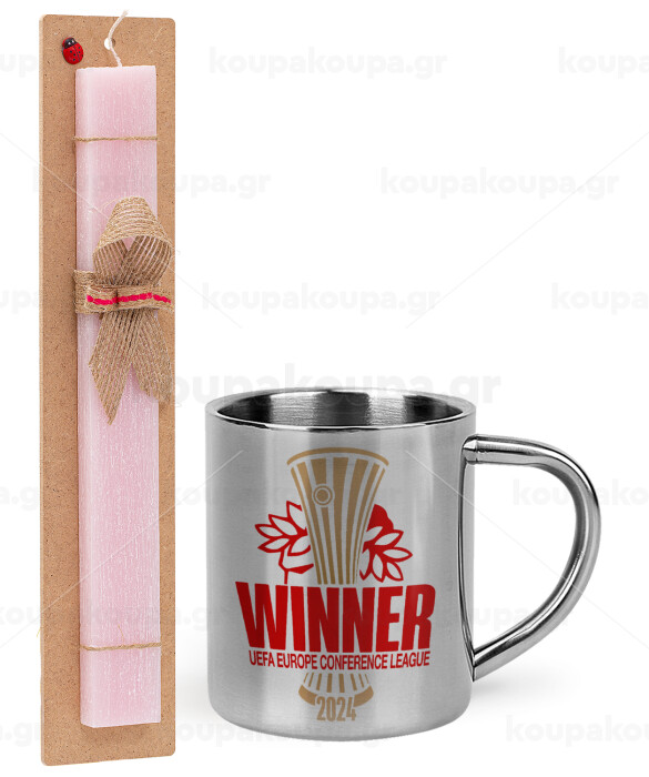 Europa Conference League WINNER, Easter Set, metallic thermal cup (300ml) & aromatic flat Easter candle (30cm) (PINK)