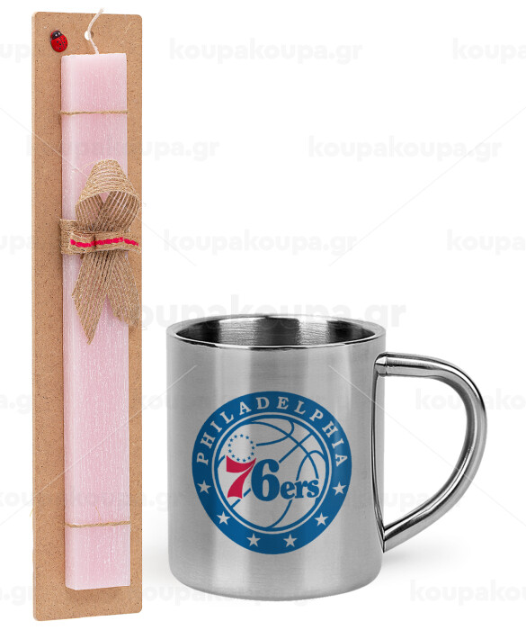 Philadelphia 76ers, Easter Set, metallic thermal cup (300ml) & aromatic flat Easter candle (30cm) (PINK)