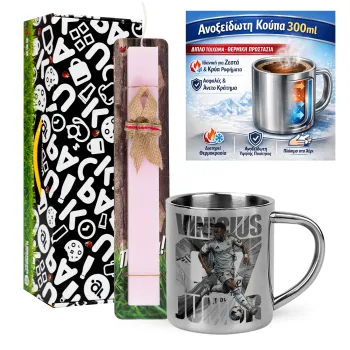 Vinícius Júnior (Βινίσιους Ζούνιορ), Easter Set, metallic thermal cup (300ml) & aromatic flat Easter candle (30cm) (PINK)