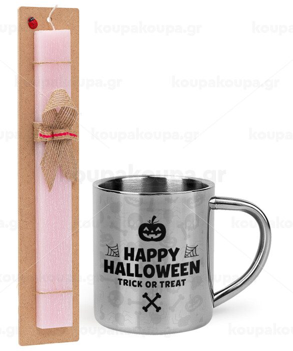 Happy Halloween pumpkin, Easter Set, metallic thermal cup (300ml) & aromatic flat Easter candle (30cm) (PINK)