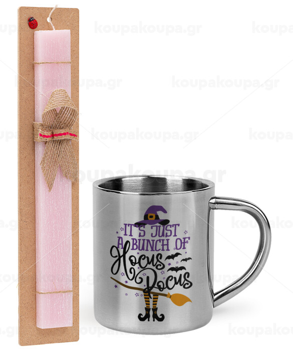 It's just a bunch of hocus pocus - halloween, Easter Set, metallic thermal cup (300ml) & aromatic flat Easter candle (30cm) (PINK)