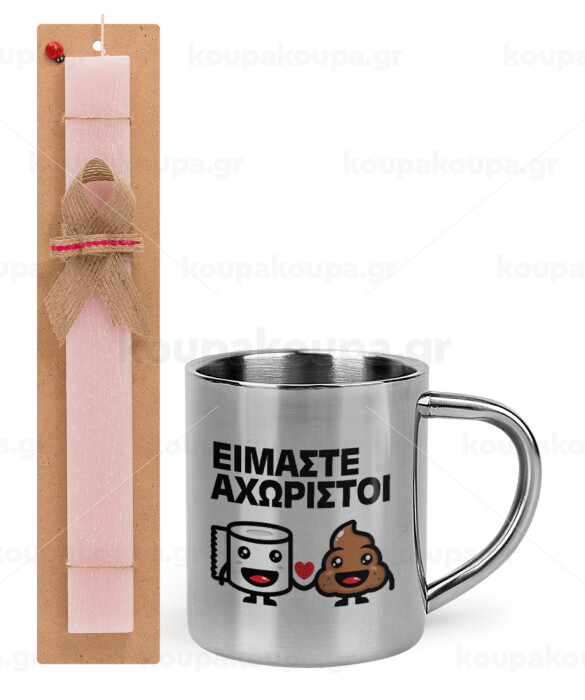 Είμαστε αχώριστοι, Easter Set, metallic thermal cup (300ml) & aromatic flat Easter candle (30cm) (PINK)