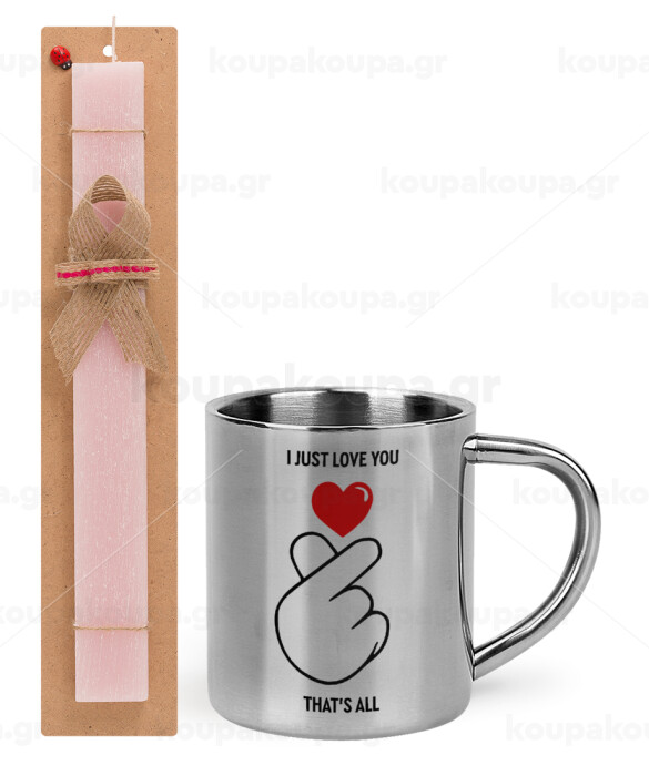 I just love you, that's all., Easter Set, metallic thermal cup (300ml) & aromatic flat Easter candle (30cm) (PINK)