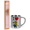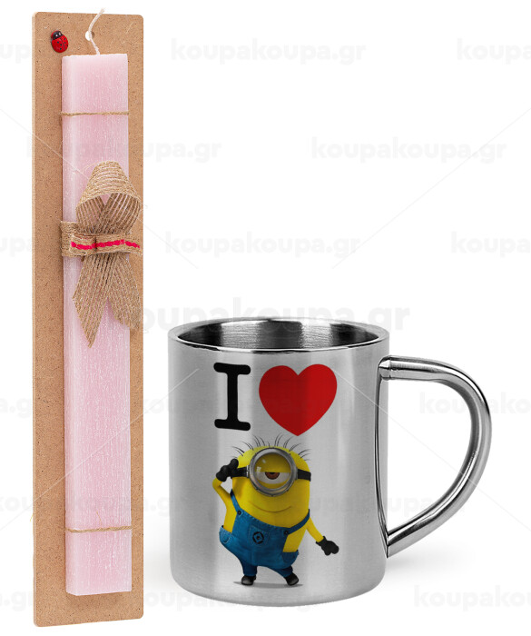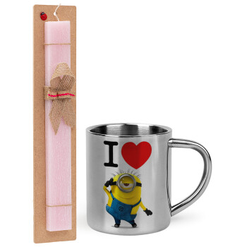 I love by minion, Easter Set, metallic thermal cup (300ml) & aromatic flat Easter candle (30cm) (PINK)