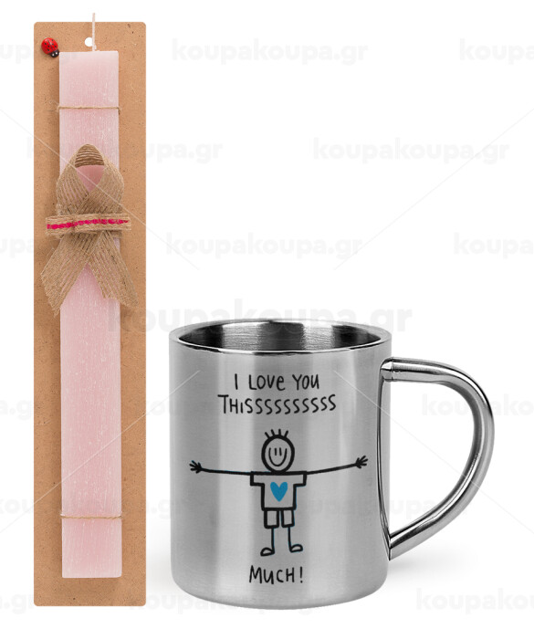 I Love you thissss much (boy)..., Easter Set, metallic thermal cup (300ml) & aromatic flat Easter candle (30cm) (PINK)