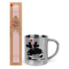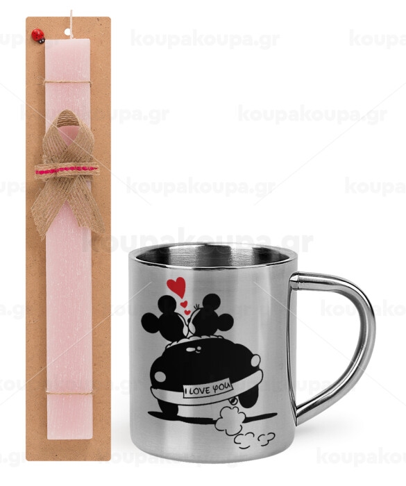 Love Car, Easter Set, metallic thermal cup (300ml) & aromatic flat Easter candle (30cm) (PINK)