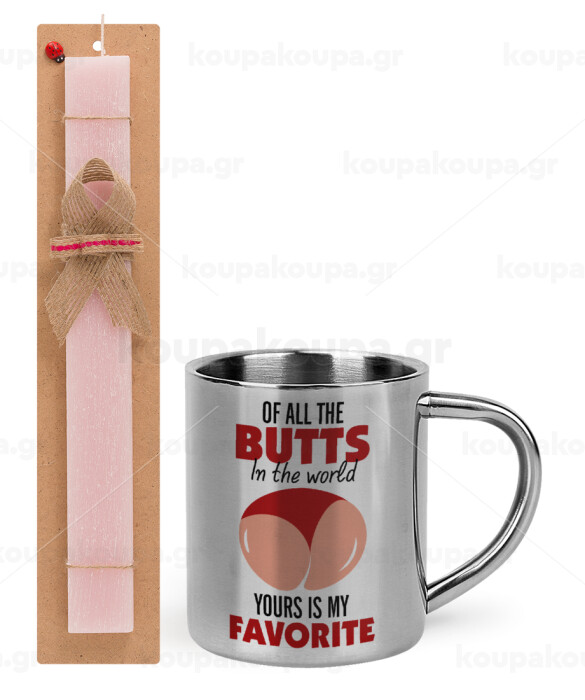 Of all the Butts in the world, your's is my favorite, Easter Set, metallic thermal cup (300ml) & aromatic flat Easter candle (30cm) (PINK)