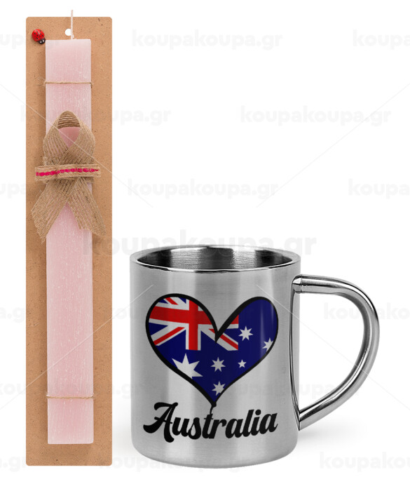 Australia flag, Easter Set, metallic thermal cup (300ml) & aromatic flat Easter candle (30cm) (PINK)