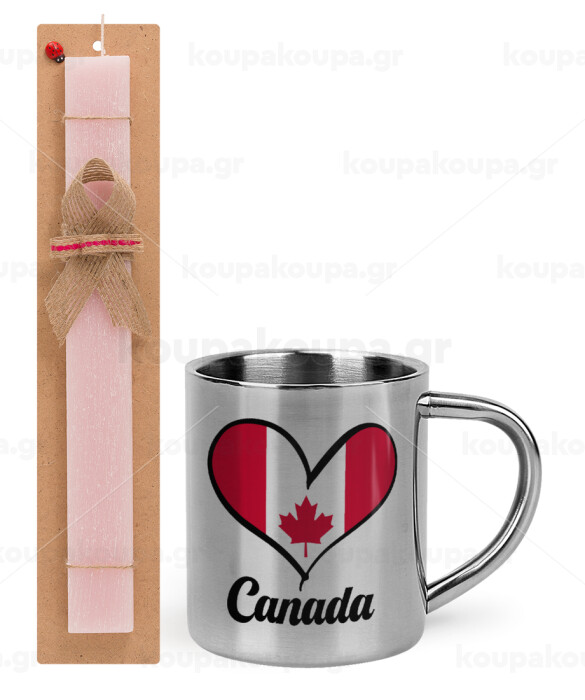 Canada flag, Easter Set, metallic thermal cup (300ml) & aromatic flat Easter candle (30cm) (PINK)