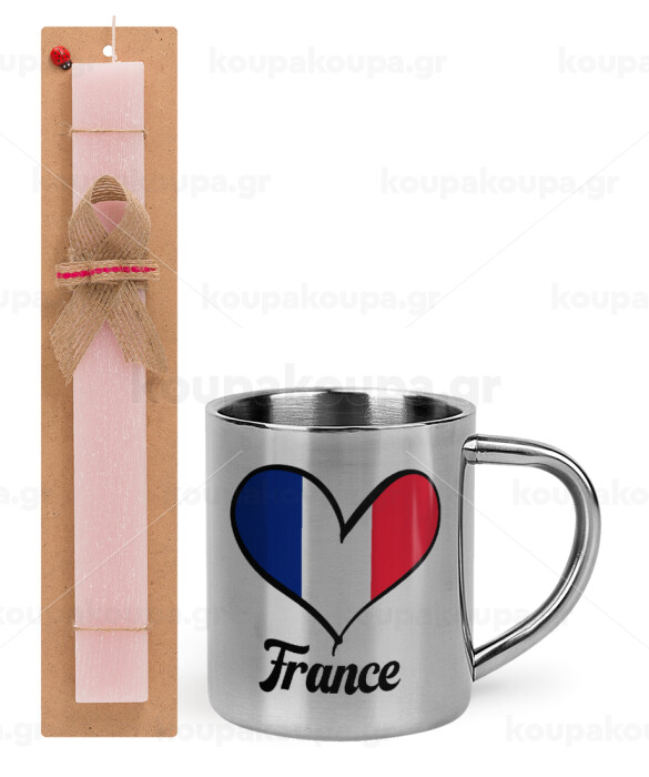 France flag, Easter Set, metallic thermal cup (300ml) & aromatic flat Easter candle (30cm) (PINK)