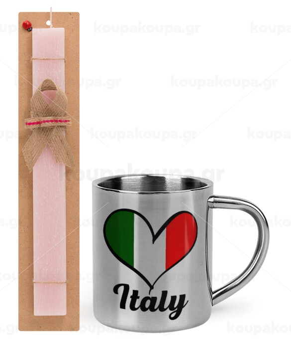 Italy flag, Easter Set, metallic thermal cup (300ml) & aromatic flat Easter candle (30cm) (PINK)