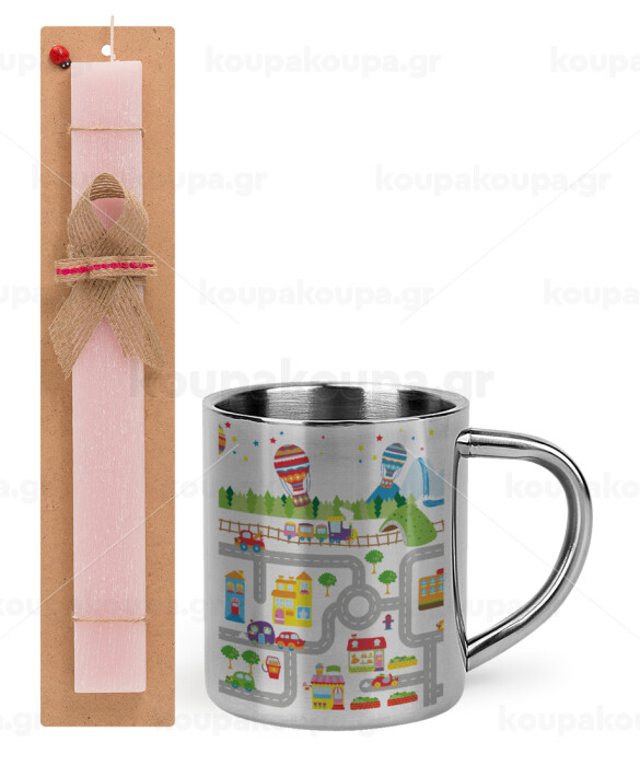 City road track maps, Easter Set, metallic thermal cup (300ml) & aromatic flat Easter candle (30cm) (PINK)