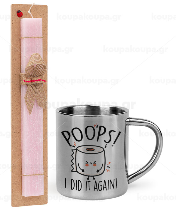Poops!...I Did It Again, Easter Set, metallic thermal cup (300ml) & aromatic flat Easter candle (30cm) (PINK)