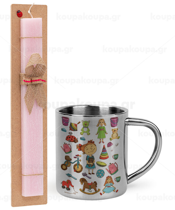 Toys Girl, Easter Set, metallic thermal cup (300ml) & aromatic flat Easter candle (30cm) (PINK)