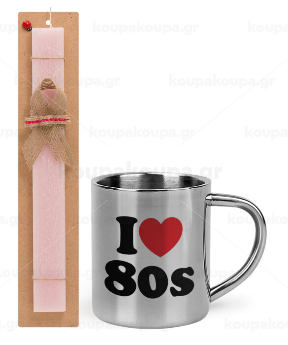 I Love 80s, Easter Set, metallic thermal cup (300ml) & aromatic flat Easter candle (30cm) (PINK)