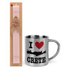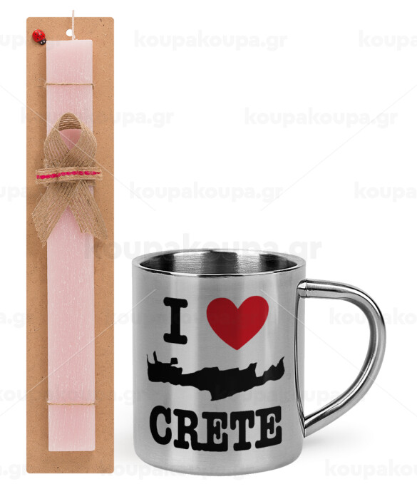 I Love Crete, Easter Set, metallic thermal cup (300ml) & aromatic flat Easter candle (30cm) (PINK)