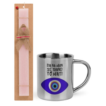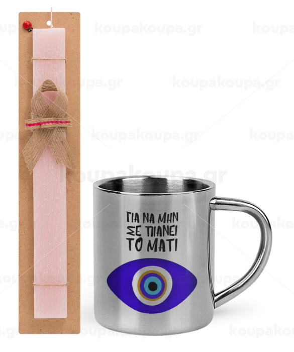 Για να μην σε πιάνει το μάτι, Easter Set, metallic thermal cup (300ml) & aromatic flat Easter candle (30cm) (PINK)