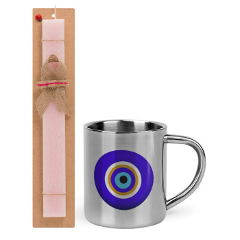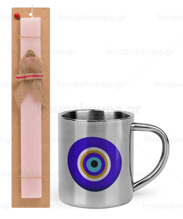 Το μάτι, Easter Set, metallic thermal cup (300ml) & aromatic flat Easter candle (30cm) (PINK)