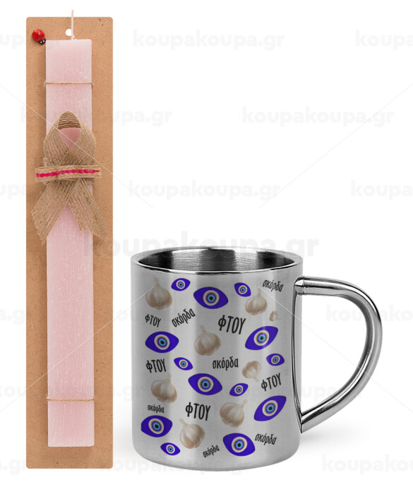 Φτου, φτου, σκόρδα!!!, Easter Set, metallic thermal cup (300ml) & aromatic flat Easter candle (30cm) (PINK)