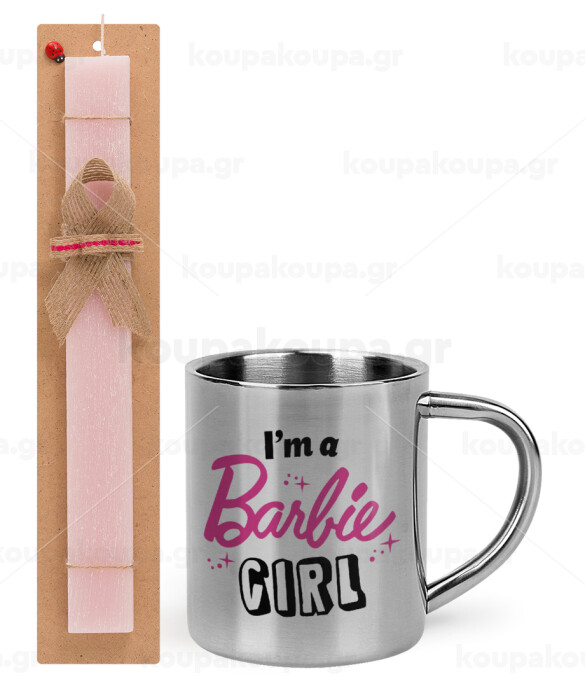 I'm Barbie girl, Easter Set, metallic thermal cup (300ml) & aromatic flat Easter candle (30cm) (PINK)