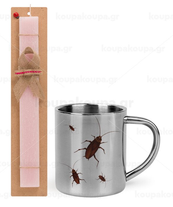 Blattodea, Easter Set, metallic thermal cup (300ml) & aromatic flat Easter candle (30cm) (PINK)