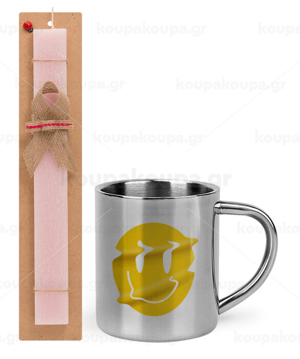 Smile avatar distrorted, Easter Set, metallic thermal cup (300ml) & aromatic flat Easter candle (30cm) (PINK)