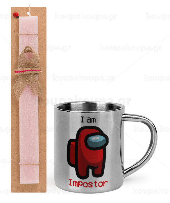 Among US i am impostor, Easter Set, metallic thermal cup (300ml) & aromatic flat Easter candle (30cm) (PINK)