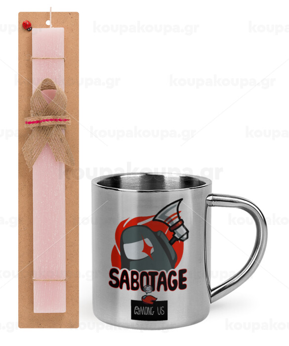 Among US Sabotage, Easter Set, metallic thermal cup (300ml) & aromatic flat Easter candle (30cm) (PINK)