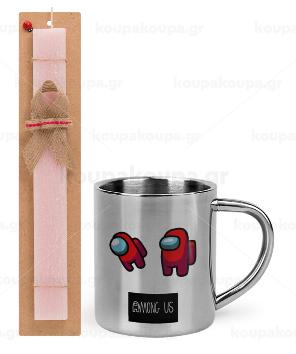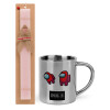 Among US, Easter Set, metallic thermal cup (300ml) & aromatic flat Easter candle (30cm) (PINK)