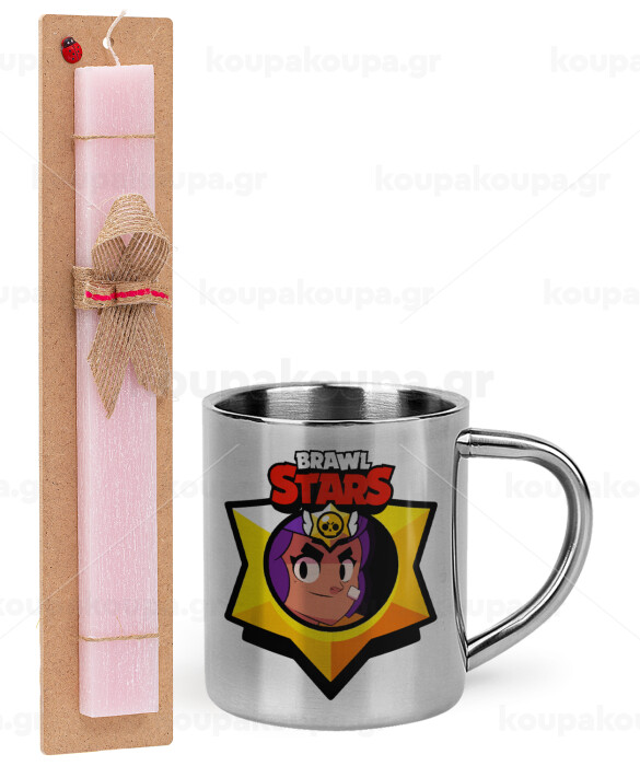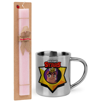 Brawl Stars Shelly, Easter Set, metallic thermal cup (300ml) & aromatic flat Easter candle (30cm) (PINK)