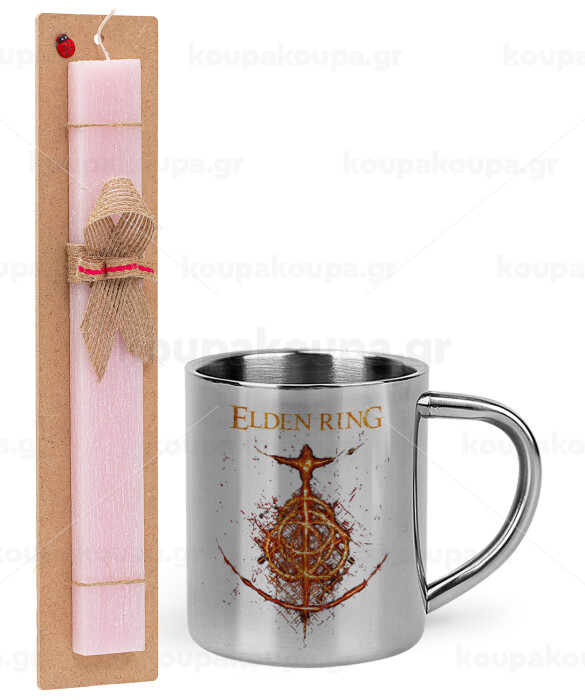 Elden Ring, Easter Set, metallic thermal cup (300ml) & aromatic flat Easter candle (30cm) (PINK)