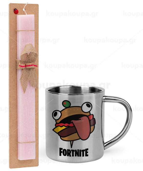 Fortnite Durr Burger, Easter Set, metallic thermal cup (300ml) & aromatic flat Easter candle (30cm) (PINK)