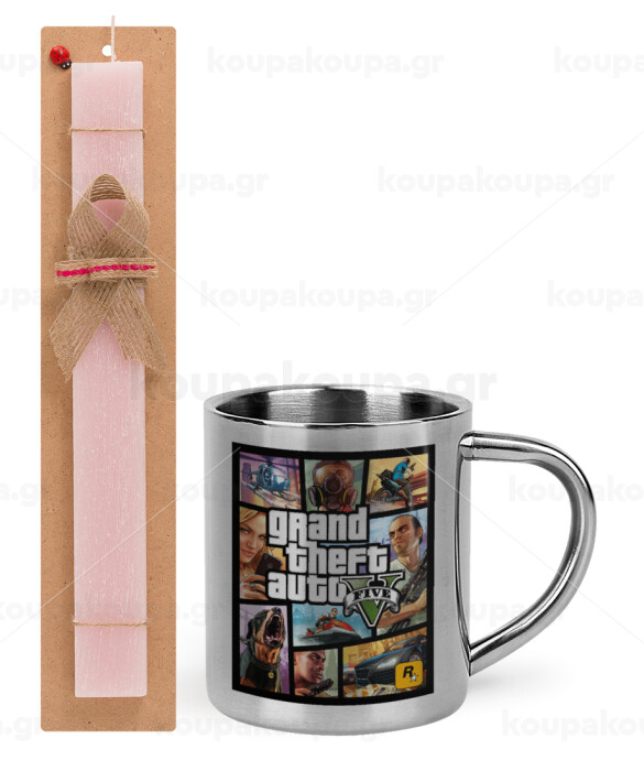 GTA V, Easter Set, metallic thermal cup (300ml) & aromatic flat Easter candle (30cm) (PINK)