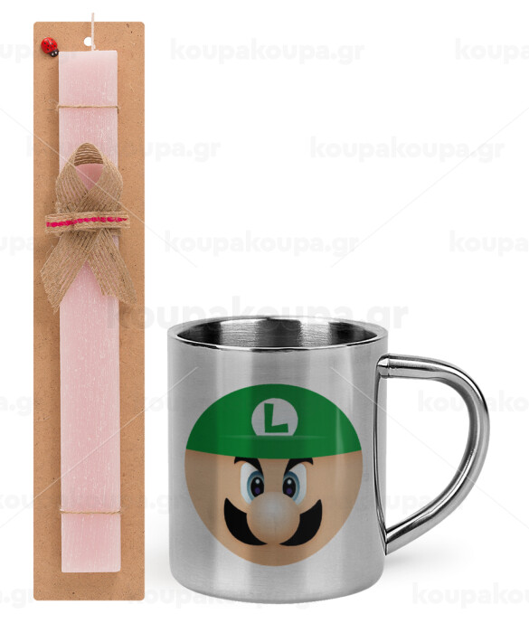 Luigi flat, Easter Set, metallic thermal cup (300ml) & aromatic flat Easter candle (30cm) (PINK)