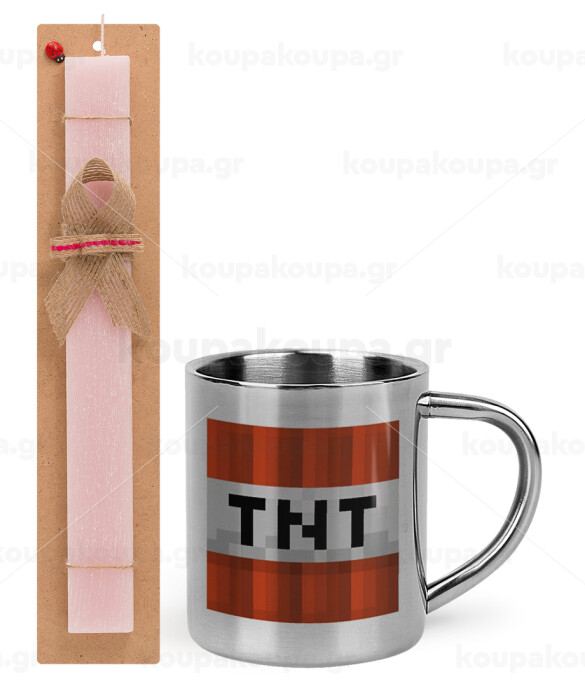 Minecraft TNT, Easter Set, metallic thermal cup (300ml) & aromatic flat Easter candle (30cm) (PINK)