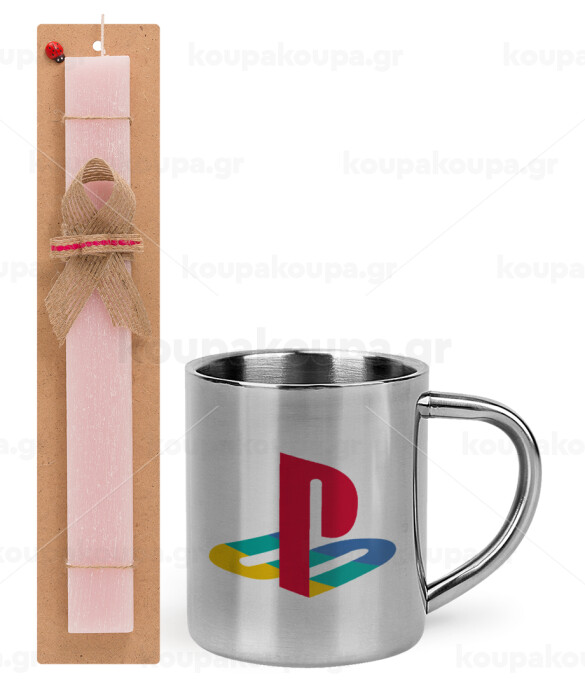 Playstation, Easter Set, metallic thermal cup (300ml) & aromatic flat Easter candle (30cm) (PINK)