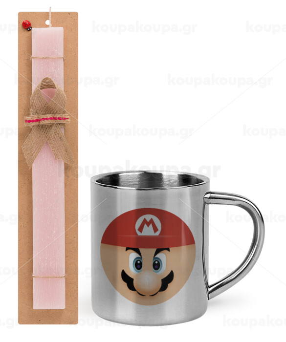 Super mario flat, Easter Set, metallic thermal cup (300ml) & aromatic flat Easter candle (30cm) (PINK)