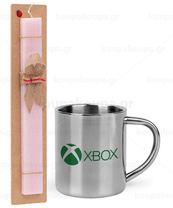 xbox, Easter Set, metallic thermal cup (300ml) & aromatic flat Easter candle (30cm) (PINK)