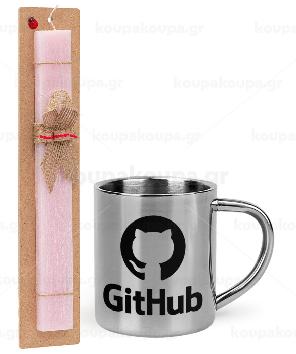 GitHub, Easter Set, metallic thermal cup (300ml) & aromatic flat Easter candle (30cm) (PINK)