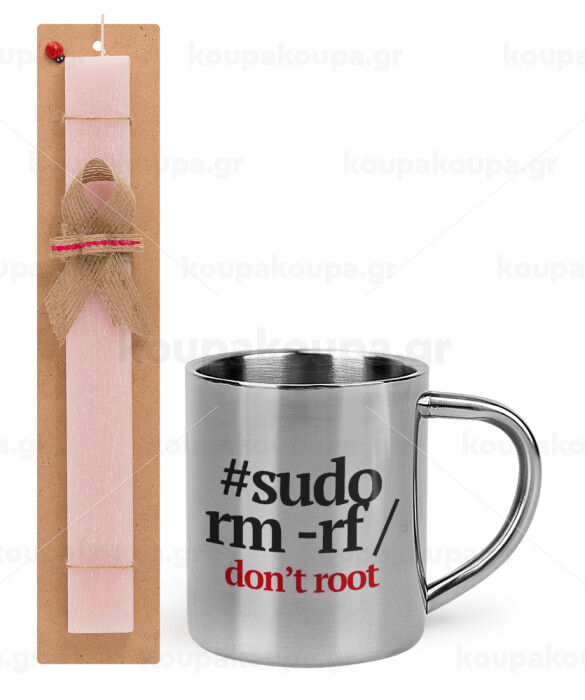 Sudo RM, Easter Set, metallic thermal cup (300ml) & aromatic flat Easter candle (30cm) (PINK)