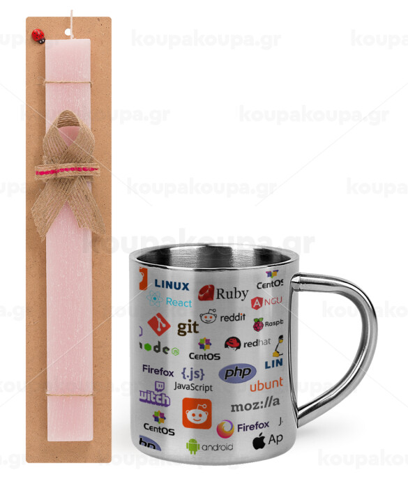 Tech logos, Easter Set, metallic thermal cup (300ml) & aromatic flat Easter candle (30cm) (PINK)
