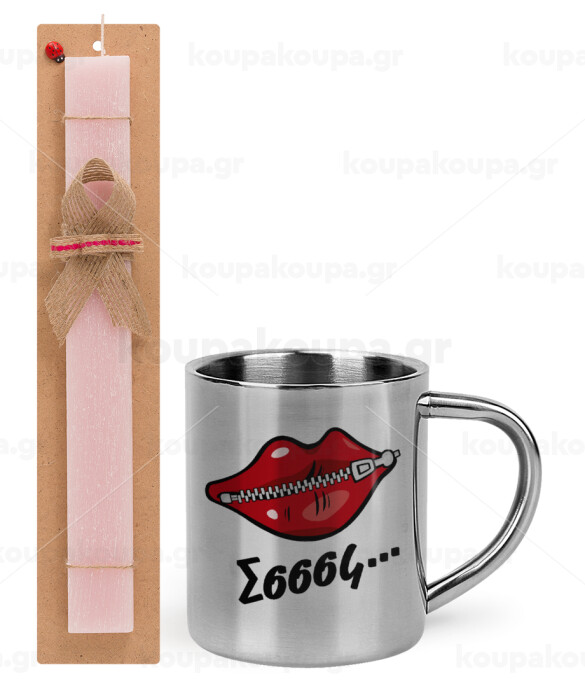 Σσσσς..., Easter Set, metallic thermal cup (300ml) & aromatic flat Easter candle (30cm) (PINK)