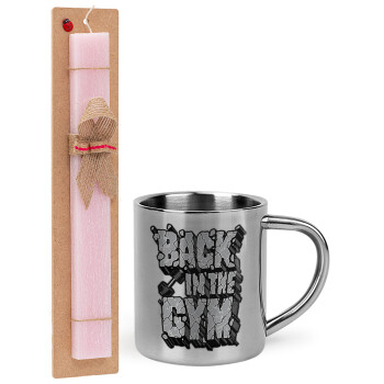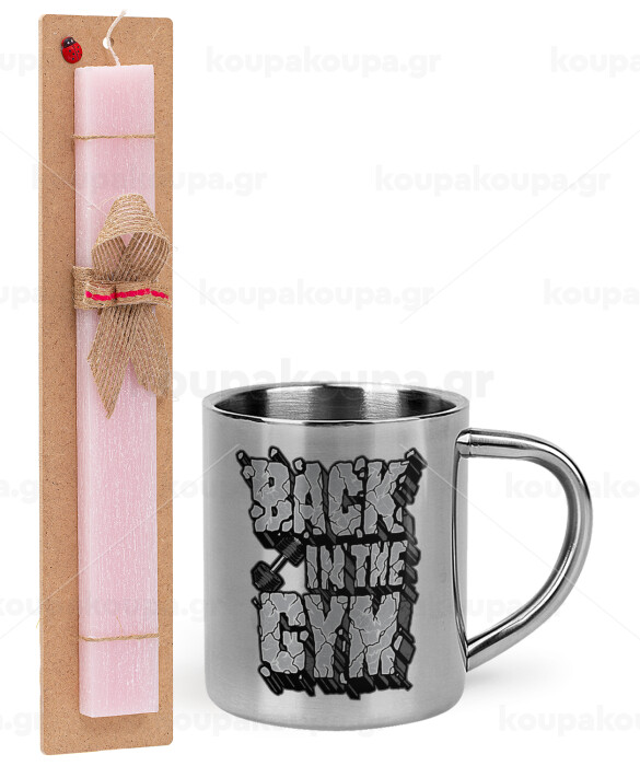Back in the GYM, Easter Set, metallic thermal cup (300ml) & aromatic flat Easter candle (30cm) (PINK)
