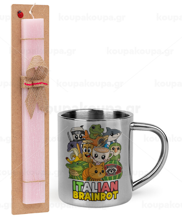 Italian Brainrot friends, Easter Set, metallic thermal cup (300ml) & aromatic flat Easter candle (30cm) (PINK)